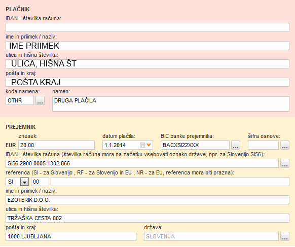 - Primer izpolnjenega obrazca: